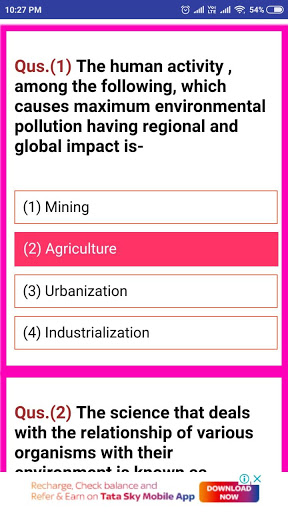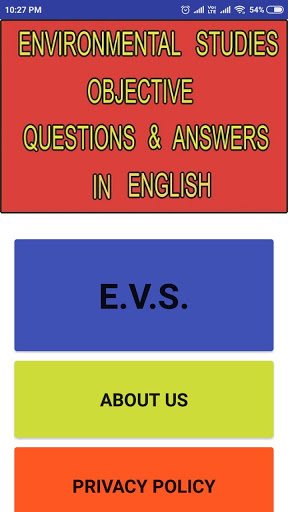 E.V.S. important offline application.It consists Environmental studies objective question and answer in english.
