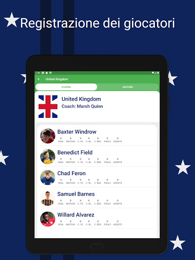 Coppa Facile offre anche un sistema completo per la gestione del tuo torneo. Puoi aggiungere moderatori per aiutare a modificare il torneo, inviare link per la registrazione delle squadre, aggiungere banner sponsor, stemmi delle squadre e foto dei giocatori, condividere sui social media e altro ancora.