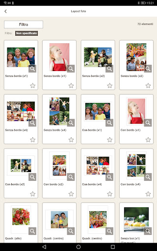Scegli tra collage, calendari e molti altri modelli e importa le immagini dal telefono, tablet e account cloud
