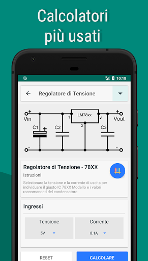 Questa applicazione aiuta gli studenti e gli appassionati a costruire circuiti elettronici. Contiene le funzioni più frequentemente utilizzate in questo campo e altre informazioni utili per studenti di ingegneria o ingegneri elettronici.