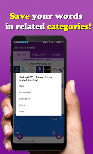 Search words and phrases in multiple English dictionaries online, and save important words, phrasal verbs, idioms, expressions and any other word or phrase you need in relevant section. Also, you can save the meaning in your "native" language to revise them whenever you want.