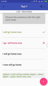 • Each level contains over 20 grammar activities, split into about 30 tests, are made to mimic a real English exams, to prepare you to English tests