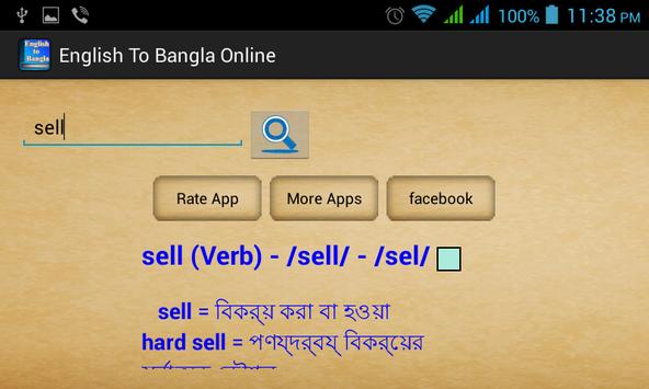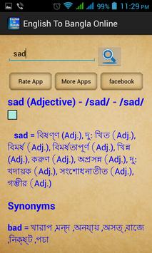 English to Bengali Dictionary Online and Free. It has word meaning from Bangla Academy Dictionary. You can get meaning of any English word very easily. Just keep your internet connection on, then search your desire word to get details with meaning of each word.