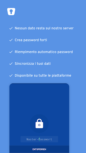 - La sicurezza dei tuoi dati è la nostra priorità e comincia dal luogo in cui sono memorizzati. A differenza di altri gestori di password, noi non conserviamo le tue password e i tuoi file sui nostri server.