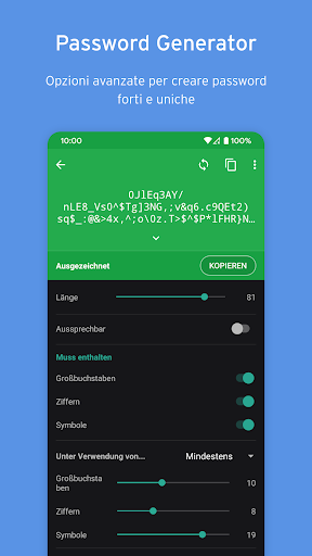 - Memorizza tutto: un caveau sicuro per le tue credenziali di accesso, onti correnti, carte di credito, documenti di identità e patenti di guida, allegati e per qualsiasi altro tipo di informazione.