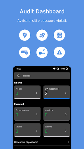 - Controlla automaticamente la presenza di password vecchie o compromesse.