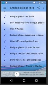 Many ENRIQUE IGLESIAS song that you can listen to here. free install the application, select the song you like and play. This app only provides Mp3 Streaming and no download feature because it may infringe the copyright.