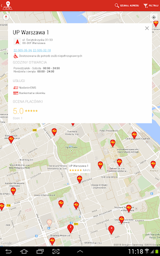This option allows you to find post offices nearby that meet certain criteria: open now, having an ATM in the window and many more. Every post offices has a set of information about opening hours and available services.