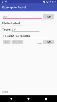 Now you can use Ettercap from your phone! This app uses the command-line version of Ettercap as a backend, and overlays a GUI on top of it to control it. You can set your arguments, targets, and even an output file to capture the packets.