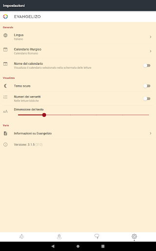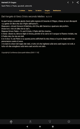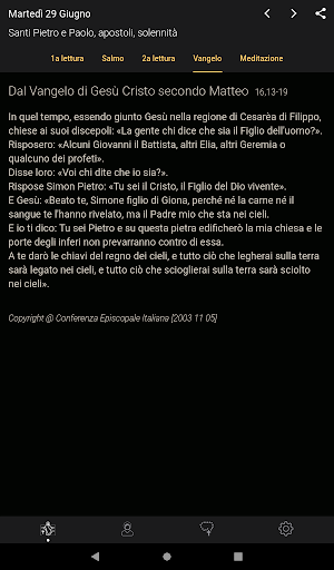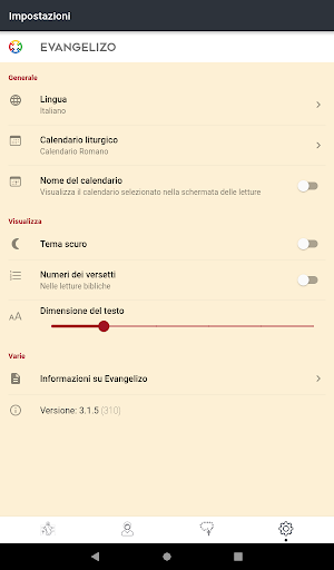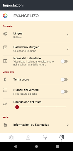 - Tema scuro (per ambienti poco luminosi, nelle chiese, per chi ha problemi di vista...)
