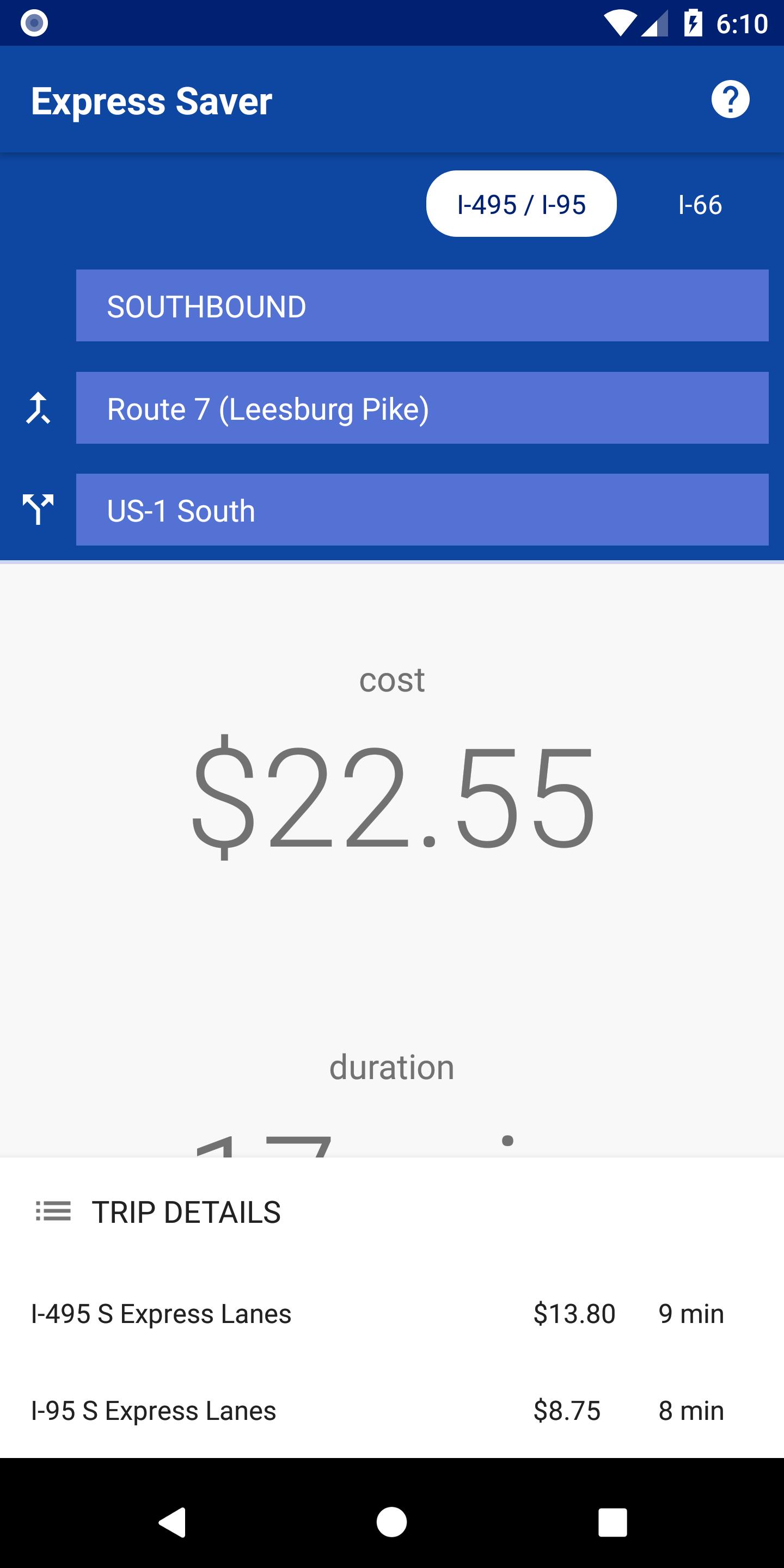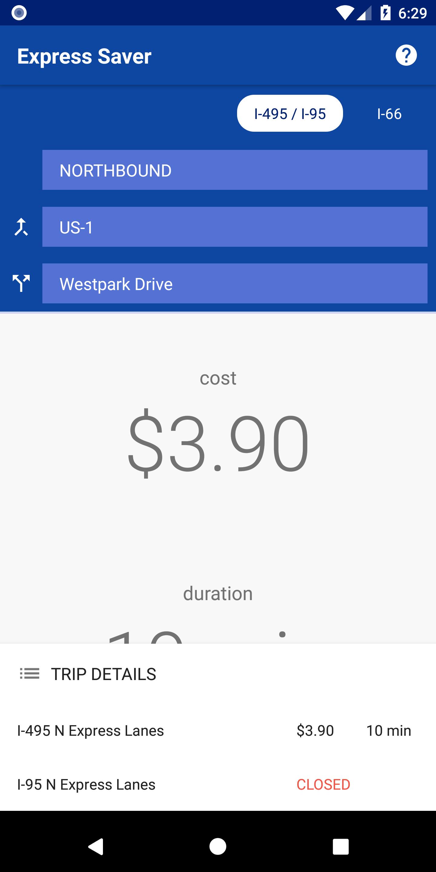Estimate your I-495 / I-95, and I-66 express lane rates ahead of time so you can make the right travel decision -- never be caught unaware with sky-high tolls again!