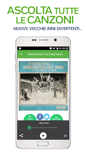 – Ascolta una suoneria dei Tifosi di City quando un amico ti chiama – imposta brani diversi per amici e avversari :)