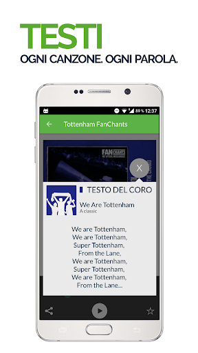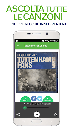 tutte da ascoltare, inviare agli amici e usare come suonerie per il tuo smartphone. Ricevi le notifiche per nuovi cori dei Tifosi di Tottenham e utilizza la funzione di registrazione integrate per inviare nuovi