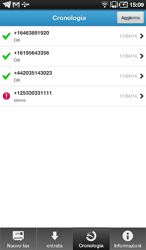 - Ricezione di aggiornamenti di stato in tempo reale per i fax inviati