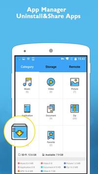 File manager provides quick access to a specific file, it uses widget to access folders in one tap from the home screen, such as music, video, picture, application, zip, and apk .