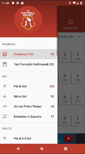 Pronostici calcistici e statistiche estese per partite di calcio, campionati e coppe aggiornati quotidianamente. Previsioni in tempo reale e analisi del gioco in tempo reale. Predizioni 1X2. Più di/Meno Gol. Gol del Primo Tempo. Entrambe le Squadre Segnano. Calci d'angolo. Handicap. Vittorie/Perdite/Pareggio.