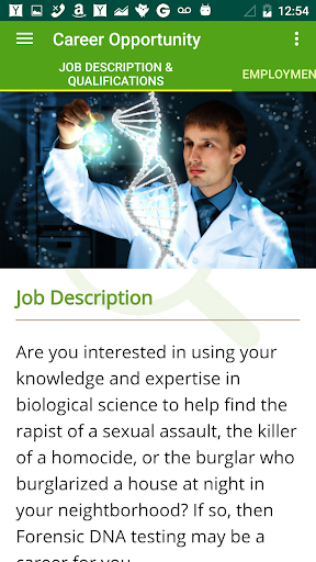Learn about forensic DNA testing, the history, how it is done, and how it is used to solve crimes. Also contain useful information on how to become a forensic DNA analyst, and job resources for seeking a job or career in the field of forensics.