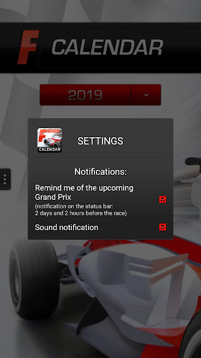 La versione gratuita di app che ricorda (usando la notifica - il suono di auto formula) per la gara: