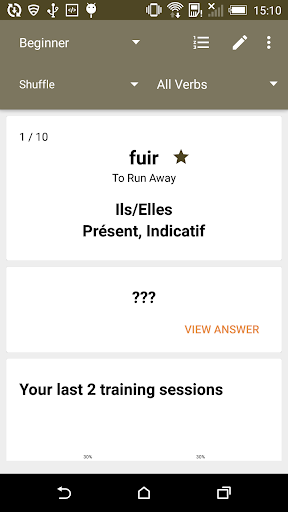 Let's be honest, learning how to conjugate French verbs doesn't feel really exciting, and yet, until you do it, you don't feel fully confident in your French. With French Verbs Conjugation Master, you can train at your own pace. The training sessions are too short to be boring, and yet, they will help you learn French verb conjugation, whether you are a beginner, focusing on simple verbs in a few basic tenses, or an advanced French student, able to tackle irregular verbs in the least used tenses.