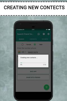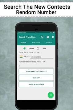 with friend search toll as this app allows you to generate random phone contact which can be used for other chat apps. Explore the world and search friends with the ultimate search tool. Friends search tool for whatsapp simply provides you the platform to create contact.