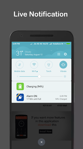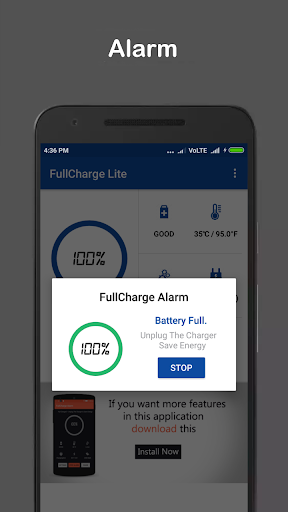 Alarm Lite a pieno carico è una versione Lite di Applicazione di allarme a pieno carico, questa applicazione ti informa il suono chiaro e attraente quando la batteria mobile carica completamente