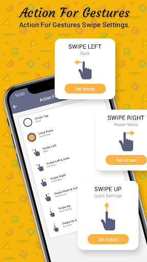 Full Screen Gestures or Swipe Gestures app also helps you to change Actions of the navigation gestures as you wish. Change the following actions on this smart gesture touch like Home, Back, Recent apps, Power Dialog, Notifications, Quick Settings, Split Screen, Turn Off-Screen, Launch App, Volume up, Volume down. You can set the action positions very easily with the Full Screen Gestures or Swipe Gestures app.