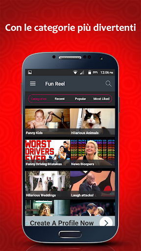 1. Puoi vedere diverse categorie nell'applicazione con innumerevoli video divertenti virali.