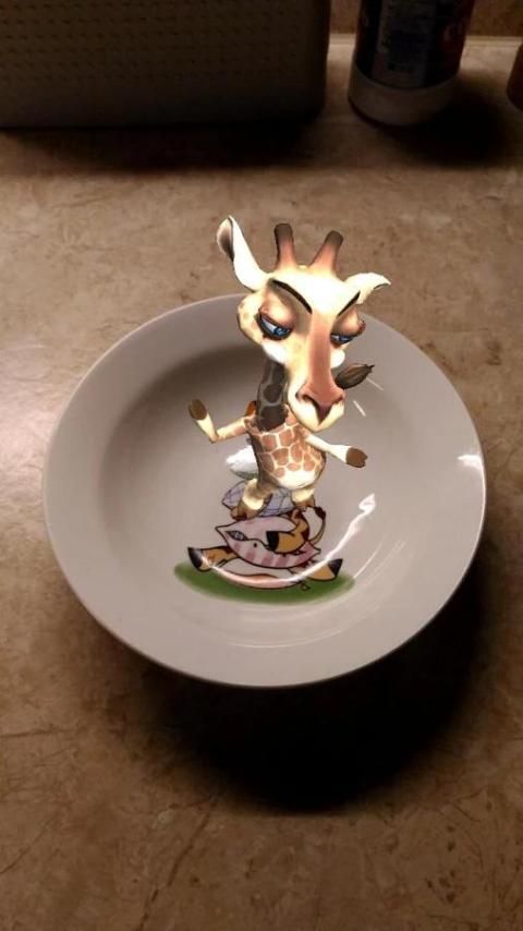 Parent downloads to phone a free application that displays images on the site, located at the bottom of the dish, a bright moving 3d model that can move, look at it from different sides.