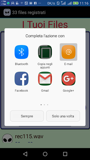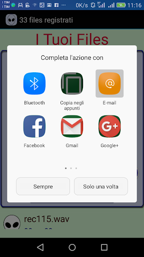 Inoltre potrai condividere le voci registrate con i tuoi amici tramite email, Facebook, Whatsapp e molti altri modi.