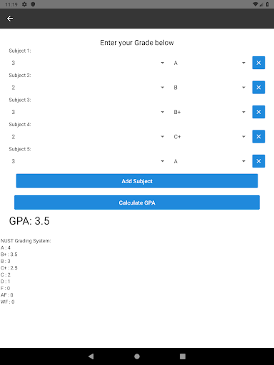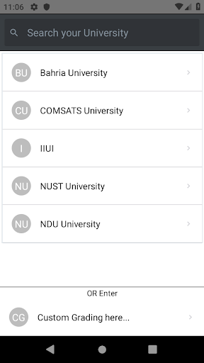 Questa applicazione è la compilazione del sistema di classificazione delle università Pakistani.Poiché le università hanno definito le proprie medie di valutazione, la maggior parte delle volte, è difficile calcolare manualmente il calcolatore per calcolare correttamente definito sulle basi del sistema di classificazione universitario.Questa applicazione risolve il problema.In questo elenco di applicazioni, il sistema di classificazione per ogni università è definito manualmente per calcolare GPA, definito dal sistema di valutazione della tua università.