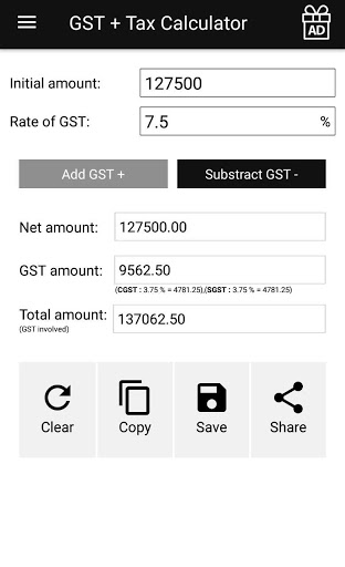 CALCOLATRICE GST offre tutte le funzionalità di calcolo GST e TASSE per tutti i paesi con un solo clic. APP CALCOLATRICE GST Calcola CGST, SGST e IGST, Includi GST, Escludi GST con un clic. Puoi anche condividere i tuoi calcoli GST.