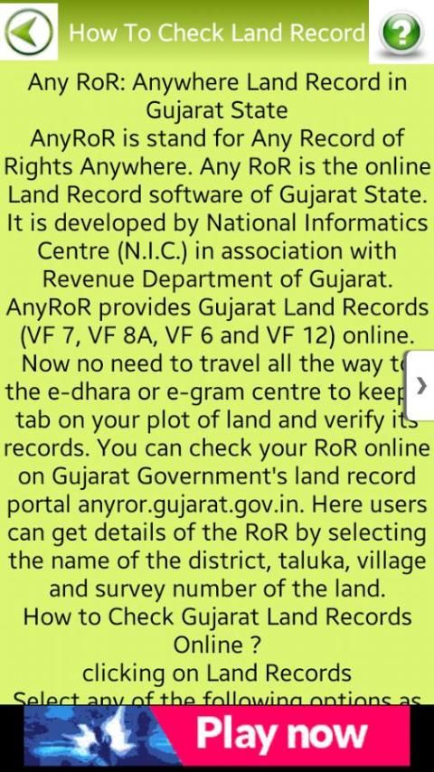 "GUJARAT RoR" an unique online app to check land records of GUJARAT state.