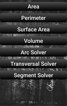 Geometry Problem Solver Pro has an included arc solver for circles, transversal solver, and segment solver, as well as calculating the area, perimeter, surface area, and / or volume of the following shapes: