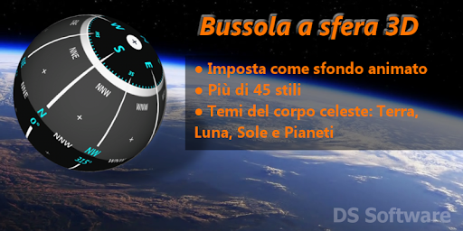Bellissima bussola sferica tridimensionale. Imposta qualsiasi bussola come sfondo animato su dispositivi compatibili.