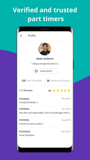 Hai sempre qualcuno a fare il tuo lavoro e di aiutare. I Gogetters sono affidabili e fanno bene il lavoro. La nostra tecnologia fornisce anche recensioni e valutazioni di ogni Gogetter.