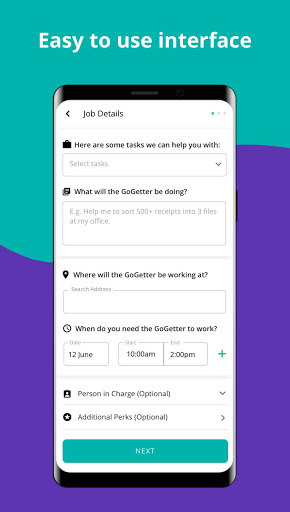 Semplicemente la chiave nella tua richiesta di lavoro sulla nostra app. Il nostro calcolatore automatico delle tasse suggerirà una tassa in base al tipo di lavoro. Affronteremo quindi la tua richiesta di lavoro a un individuo verificato nella Comunità chiamato "Gogetter" che eseguirà il lavoro.
