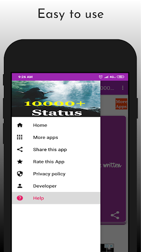 ✔ Interfaccia Mortovery facile da usare solo scorrere a sinistra ea destra per leggere lo stato del miglior atteggiamento in diretta in hindi e facilmente impostato come il tuo stato di whatsapp o lo stato fb.