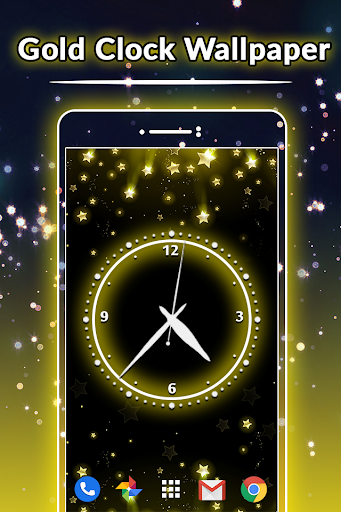 Gold Clock Live Wallpaper Mostra un orologio analogico di alta qualità.