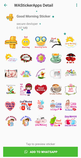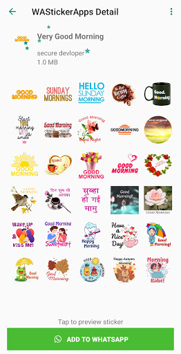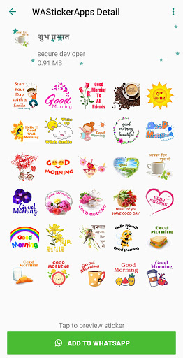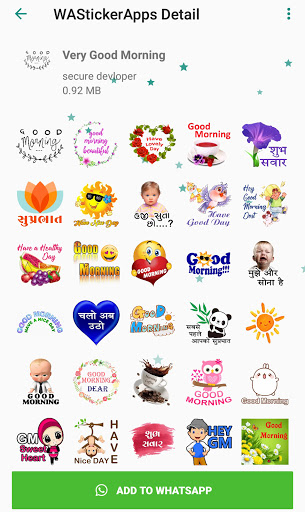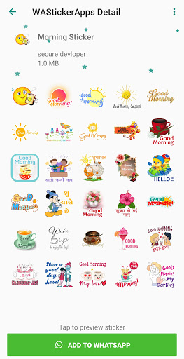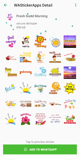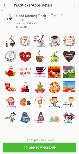 Buongiorno Wastickerapps per Whatsapp include buongiorno, buongiorno adesivi notturni, romantico e amore, Gujarati, compleanno, chat quotidiana e altri adesivi ...
