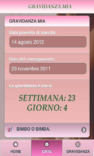 Questo programma non intende in alcun modo sostiutire il ruolo fondamentale ricoperto dal personale medico di propria fiducia, e deve essere considerato esclusivamente come “gioco” di accompagnamento della madre durante le 40 settimane di gravidanza.