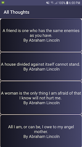 L'app contiene 25000 pensieri motivazionali e ispiratori per la vita felice e di successo da grandi leggende.