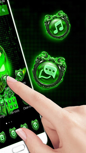 with black high-definition wallpapers and neon icon packs. If you like crystal, don’t miss the lovely Green Apple Skull theme. Download the new theme and transform your phone with black screens and neon icons.