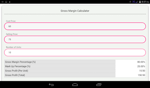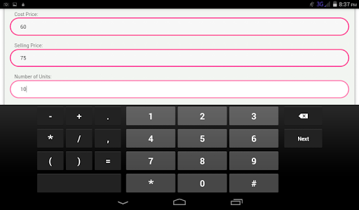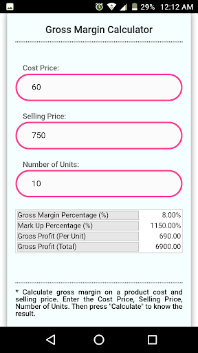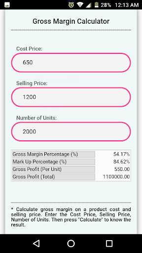 . Enter the Cost Price, Selling Price, Number of Units. Then press "Calculate" to know the result.