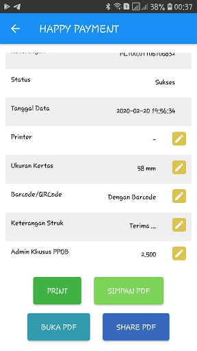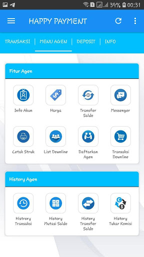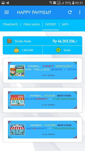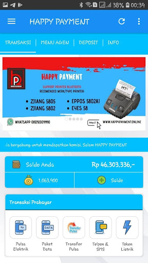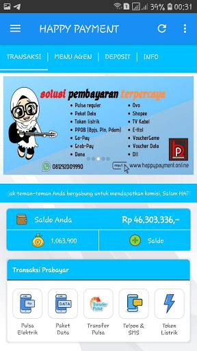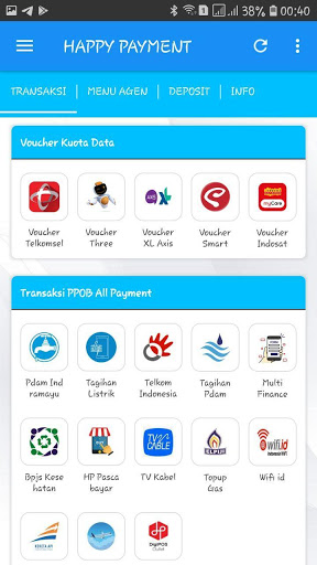 Android Happy Payment Application Indonesia è un'applicazione mobile gratuita per membri fedeli di Happy Payment Inndoenssia dove sono. Questa applicazione ti rende facile fare varie transazioni come la ricarica di ricarica, acquistare token elettrici, pagamenti bancari postpagati, buoni del gioco d'acquisto, ecc.