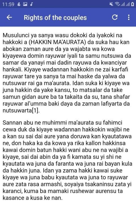 Saurari wa'azin mallam Ja'afar Mahmud Adam game da hakkokin mata akan mazajensu. Haka zalika a ciki akwai bayanai kan haqqoqin mata akan mazajensu da kuma haqqoqin miji akan matarsa tare da malam Aminu Ibrahim Daurawa da Malam Umar Sani Fagge da Dr Ahmad BUK sauke manhajjar hakkin mace akan mijinta kyautace