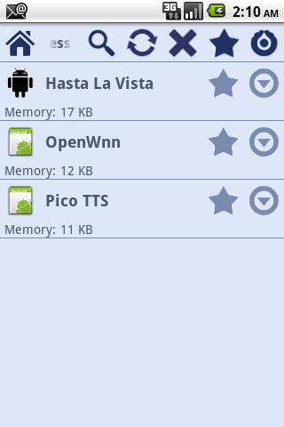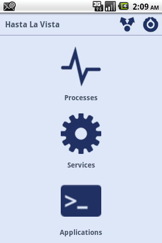 Hasta La Vista it39;s a task killer, application uninstaller and service viewer Hasta La Vista it39;s an all in one app that combines, task killer, application uninstaller and service viewer. With just one app you will:gt; Monitor and kill tasks:gt; Clean and save memory gt; Speed up your phonegt; Save battery.gt; Monitor and uninstall applications:gt; Remove useless applicationsgt; Save spacegt; Monitor running services1. How to use it?When you start Hasta La vista you will have a dashboard where you can choose to see running tasks, running services and installed applications.2. How do I kill tasks?In the dashboard click on the tasks icon and a list of running tasks will be loaded. Select the tasks you want to kill and press in kill button. The selected tasks will be killed.2.1 What is default action for long press?The default action for long press will show a popup with some options that you can perform.2.2 What is default action for press?The default action for press will show task detail.2.3 Can I configure default action for press and long press?Yes, just go to settings.2.4 Why can39;t I kill some tasks?Some tasks requires manual force stop. Enable that feature in settings and when you kill one of those apps you will need to force stop.3. How do I uninstall applications?In the dashboard click on the applications icon and a list of installed applications will be loaded. Select the application you want to uninstall and press in uninstall button. The selected application will be uninstalled.3.1 What is default action for long press?The default action for long press will show a popup with some options that you can perform.3.2 What is default action for press?The default action for press will show application detail3.3 Can I configure default action for press and long press?Yes, just go to settings.4. How do I see running services?In the dashboard click on the services icon and a list of running services will be loaded. 4.1 What is default action for long press?The default action for long press will show a popup with some options that you can perform.4.2 What is default action for press?The default action for press will show application detail4.3 Can I alternate between Hasta La vista running services and android running services?Yes, just go to settings.5. Does Hasta La Vista have an widget to quickly kill apps?Yes, in you home screen add the widget.6. How do I place na icon in notification bar?Yes, just go to settings.Features: simple and clean interface One tap kill tasks widget applications installed application search tasks running task search services running service search multitask kill multiapplication uninstaller shortcut in notification bar start when android starts very easy to configurecustomizeRemeber this is the donate version. Thanks