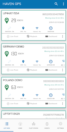 Con Haven GPS è possibile tenere traccia di tutti i tuoi veicoli che hanno installato un dispositivo GPS di Haven. È possibile visualizzare la posizione e la tua intera flotta su una mappa. In caso di furto, è possibile utilizzare la funzione di navigazione integrata per navigare sul tuo veicolo, in quanto viene scattato via, il nostro GPS di Haven ti dà avvisi di traffico in tempo reale come si sposta e si può utilizzare questi traffici Avvisi per riutilizzare il tuo viaggio.