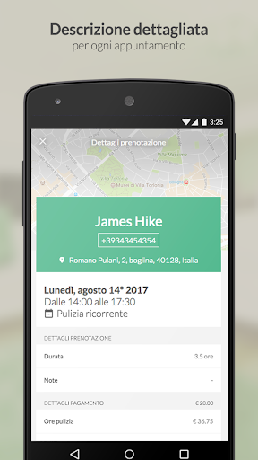 ✔Integrazione mappa: I dettagli di ogni lavoro contengono anche una mappa con la localizzazione del cliente, per aiutarti a muoverti più facilmente e velocemente fra i tuoi appuntamenti.