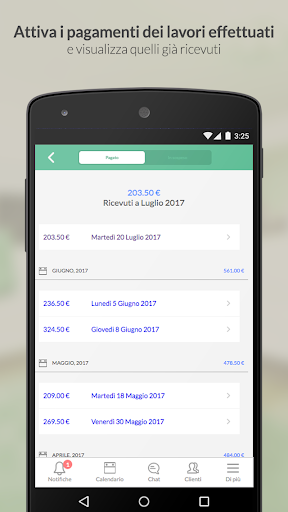 ✔Pagamenti e trasferimenti: Attiva i pagamenti dei lavori effettuati e visualizza quelli già ricevuti.