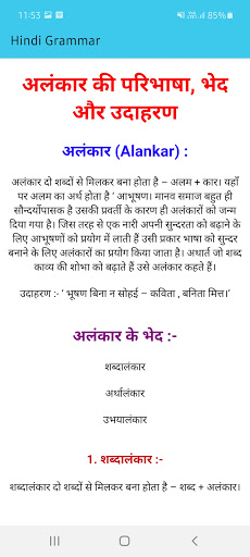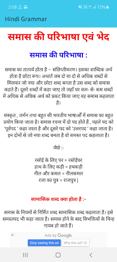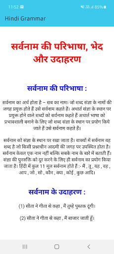 इस एप्प में आपको सम्पूर्ण हिंदी व्याकरण व्याख्या सहित दी गयी है जिसमे आपको हिंदी भाषा व्याकरण संज्ञा सर्वनाम. क्रिया काल कारक विशेषण मुहावरे विलोम शब्द सधधि समास उपसर्ग और पर्यायवाची शब्द आदि हिददी व्याकरण सबबबधित जानकारियां दी गई गई है. इस एप्प को आप ऑनलाइन के साथ ही कलाइन भी ऑफस्तन भी इस्तेमाल कर स्तेमाल कर स्तेमाल कर सकते है.